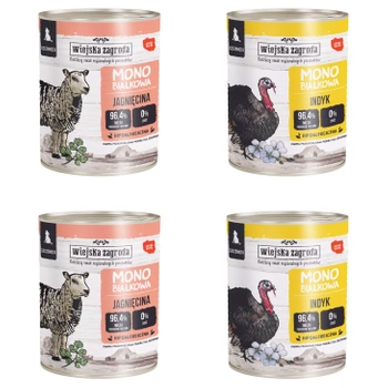 WIEJSKA ZAGRODA Karma mokra dla szczeniąt MONO 4x800g
