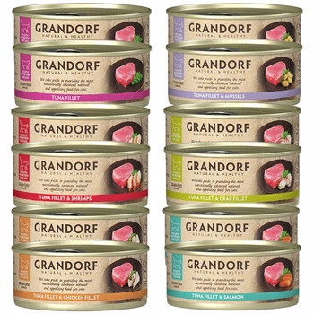 GRANDORF zdrowa karma mokra dla kota mix smaków Tuńczyk 12 x 70g Bezzbożowa