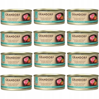 GRANDORF zdrowa karma mokra dla kota Tuńczyk Łosoś 12 x 70g Bezzbożowa