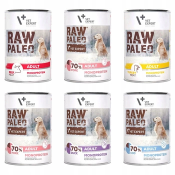 Raw Paleo Adult Karma mokra dla psa MONO mix smaków 6 x 400g Bezzbożowa