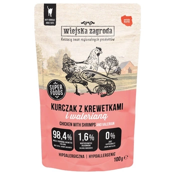 Wiejska Zagroda karma mokra dla kota Kurczak Krewetki z walerianą 12 x 100g