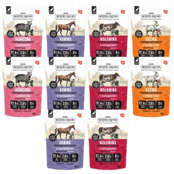 WIEJSKA ZAGRODA Monobiałkowa mokra karma dla psa mix smaków 10 x 500g