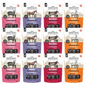 WIEJSKA ZAGRODA Monobiałkowa mokra karma dla psa mix smaków 12 x 500g