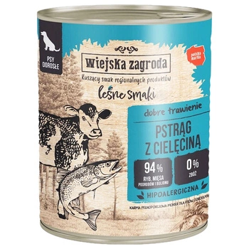 WIEJSKA ZAGRODA Leśne smaki Karma mokra dla psa Pstrąg Cielęcina 6 x 800g Bezzbożowa