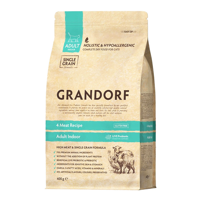 • Karma sucha GRANDORF Adult Indoor dla kota 4 mięsa