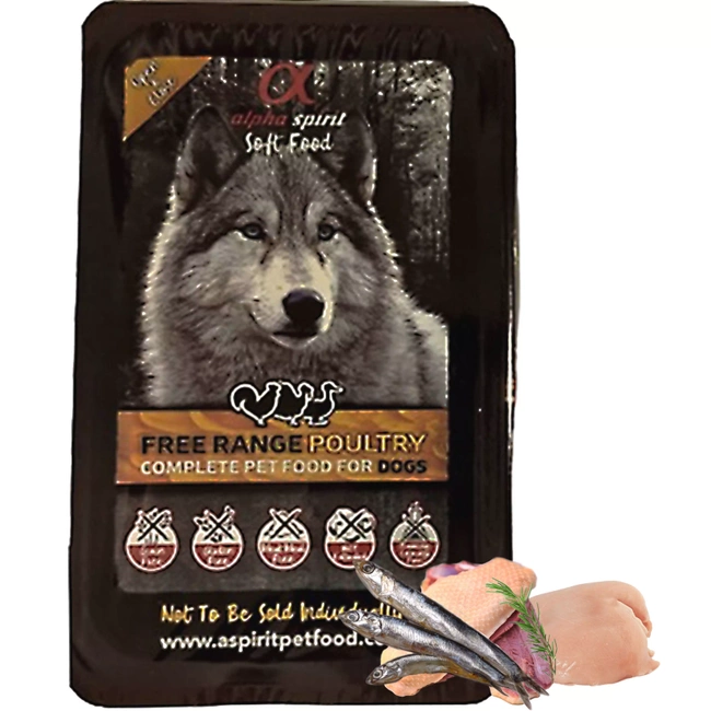 ALPHA SPIRIT POULTRY to pełnoporcjowa, bezzbożowa karma półmiękka dla psów, oparta aż w 85% na świeżym mięsie – głównie z kurczaka i indyka. Dzięki delikatnej strukturze, idealnie sprawdza się u psów w każdym wieku, również u psów starszych, wybrednych i z wrażliwym układem pokarmowym. Małe opakowanie 200 g to świetna porcja na próbę, w podróży lub na spacer.