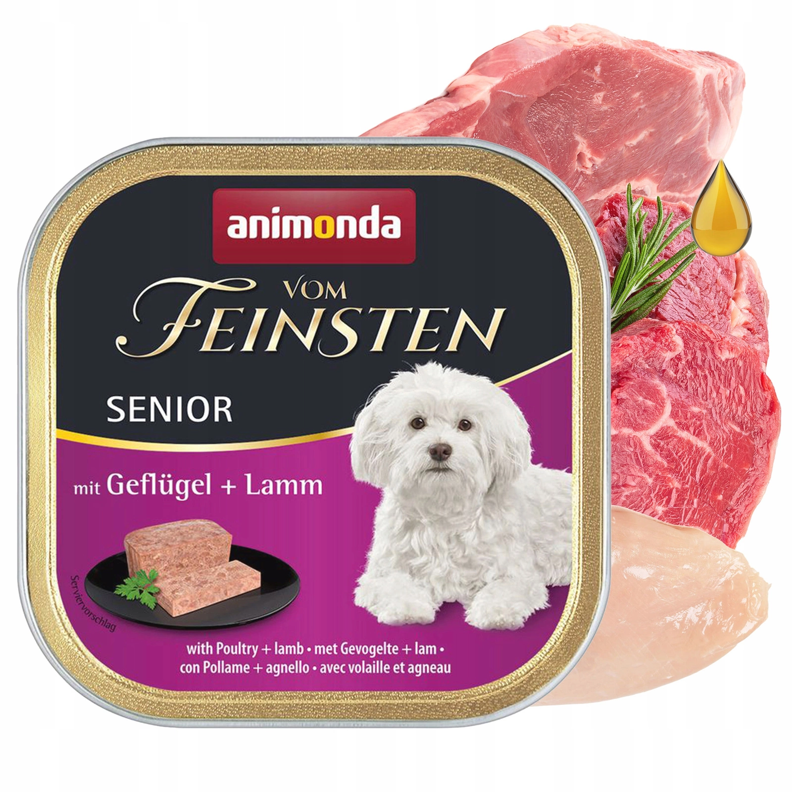ANIMONDA Vom Feinsten Senior Mix Smaków to zestaw pełnoporcjowych mokrych karm stworzonych specjalnie dla psów powyżej 7. roku życia. Różnorodność smaków, takich jak drób z jagnięciną, wołowina z kurczakiem oraz serca indyka, pozwala urozmaicić dietę seniora, dostarczając wszystkich niezbędnych składników odżywczych.