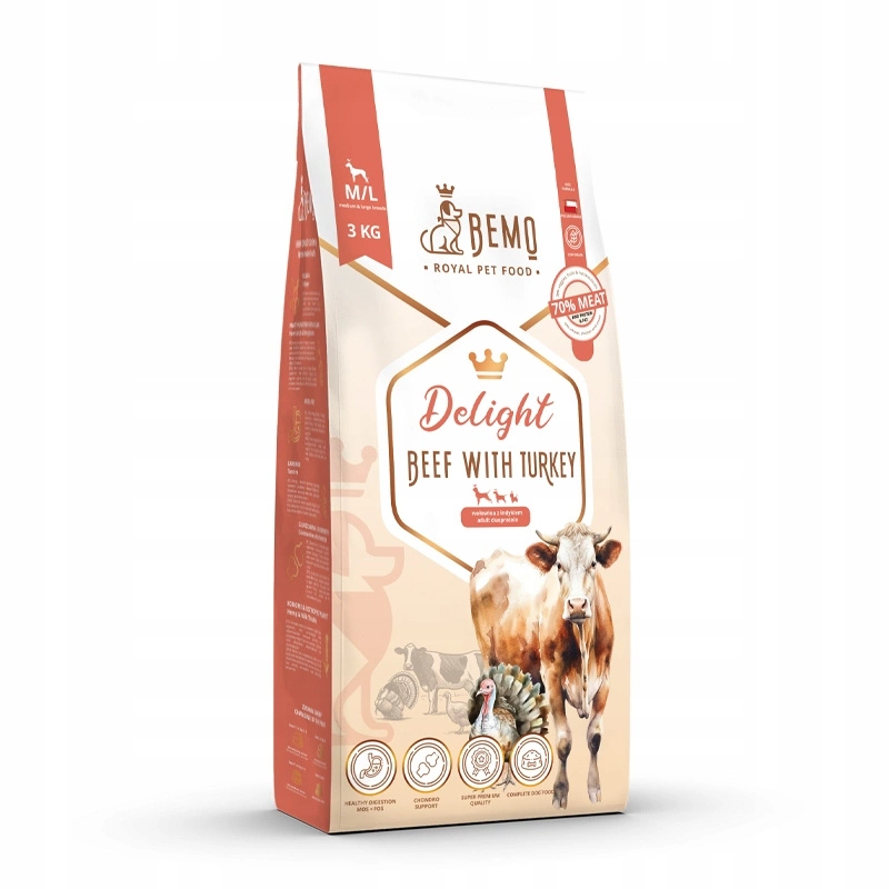 BEMO DELIGHT Karma sucha dla psa Wołowina Indyk małe średnie rasy M/L 3kg