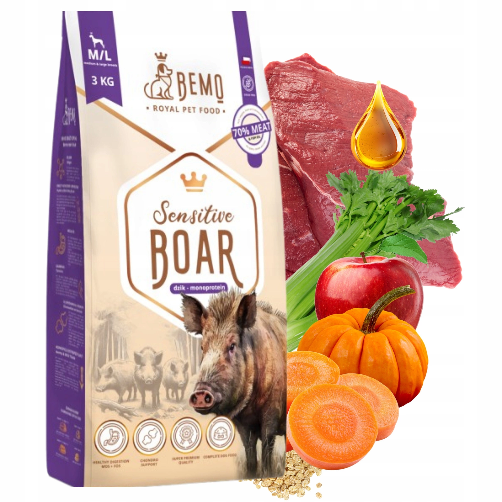 ⭐️ Bemo Sensitive Boar to hipoalergiczna formuła z udziałem tylko jednego rodzaju mięsa - wysoce odżywczego, hipoalergicznego i wybitne smacznego mięsa z dzika.
