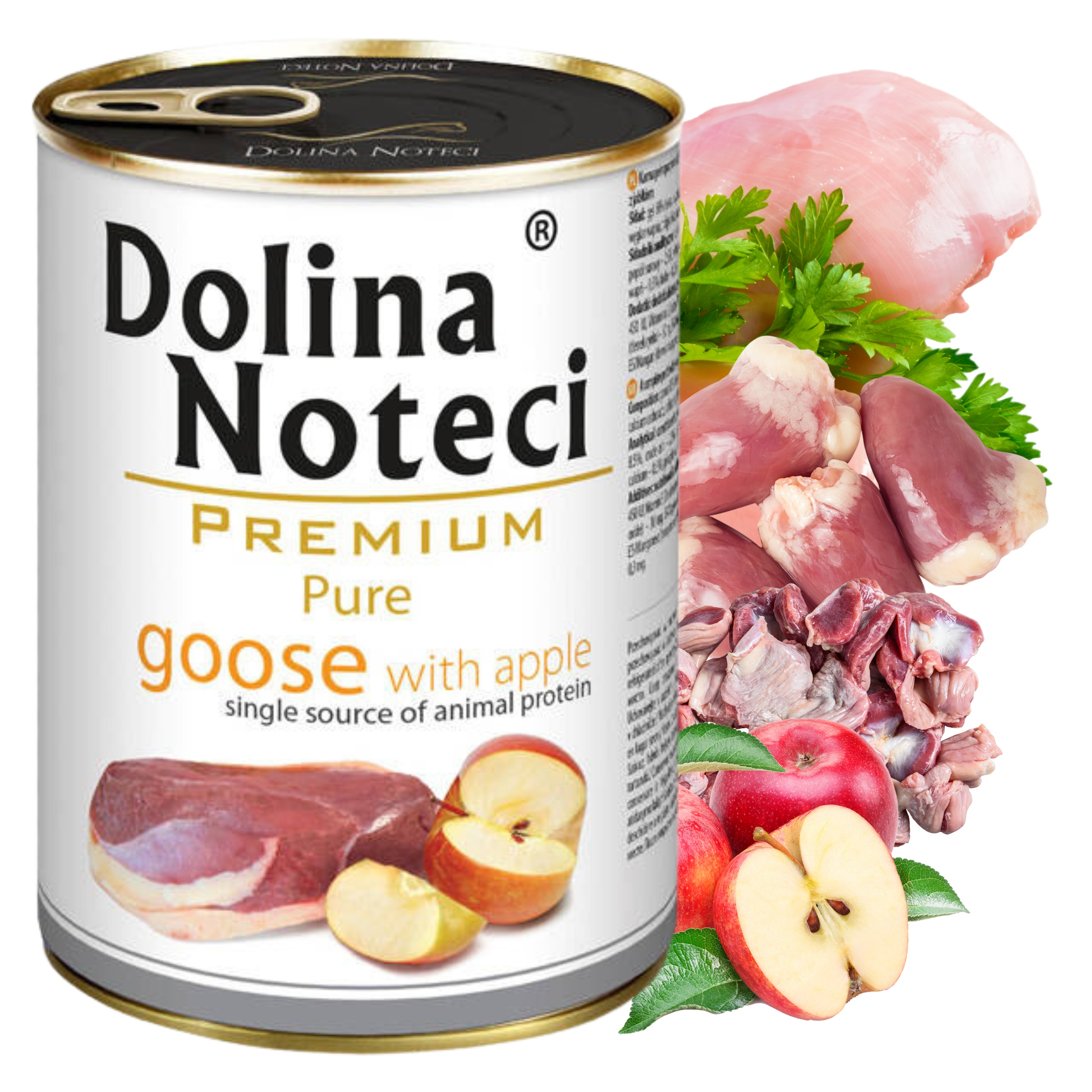 ⭐️Dolina Noteci Premium Pure „gęś z jabłkiem” to smakowita mokra karma dla dorosłych psów, łącząca mięso z gęsi z dodatkiem jabłka — to połączenie smakowe zaprojektowane z myślą o naturalnej, pełnowartościowej diecie.