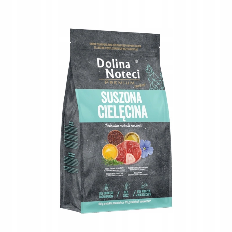 DOLINA NOTECI Premium Sterilised karma suszona dla kota Cielęcina 2 kg to pełnoporcjowa, suszona karma stworzona z myślą o potrzebach kotów po zabiegu sterylizacji. Wysoka zawartość cielęciny (45%) zapewnia lekkostrawne i wartościowe białko, niezbędne do utrzymania prawidłowej masy mięśniowej i dobrego samopoczucia.