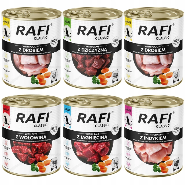 ilość:Dolina Noteci Rafi Classic karma mokra dla psa mix smaków 6 x 800g