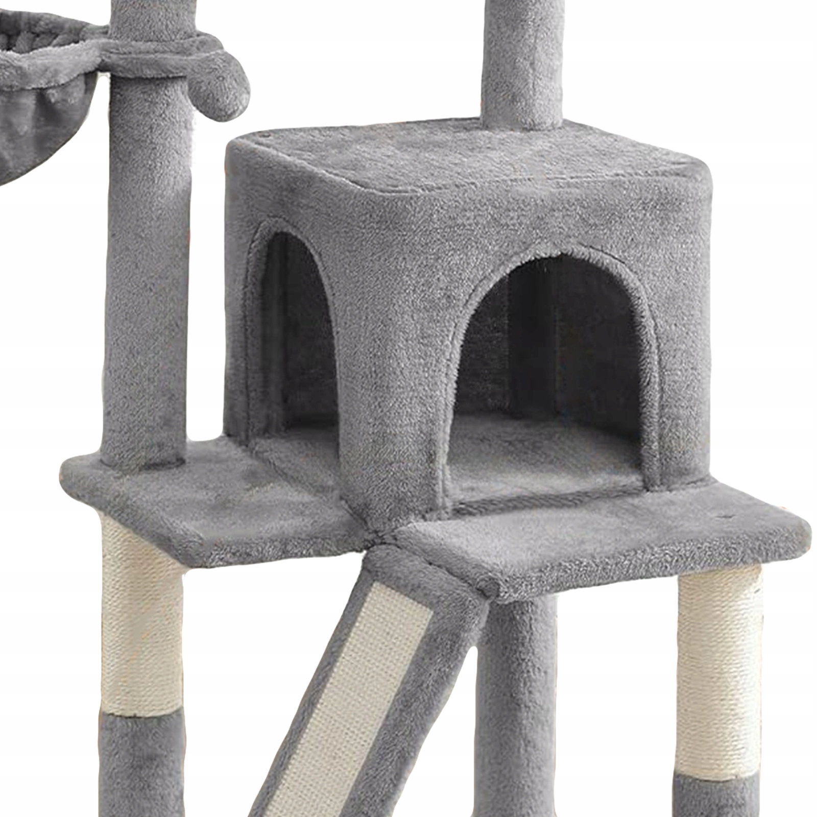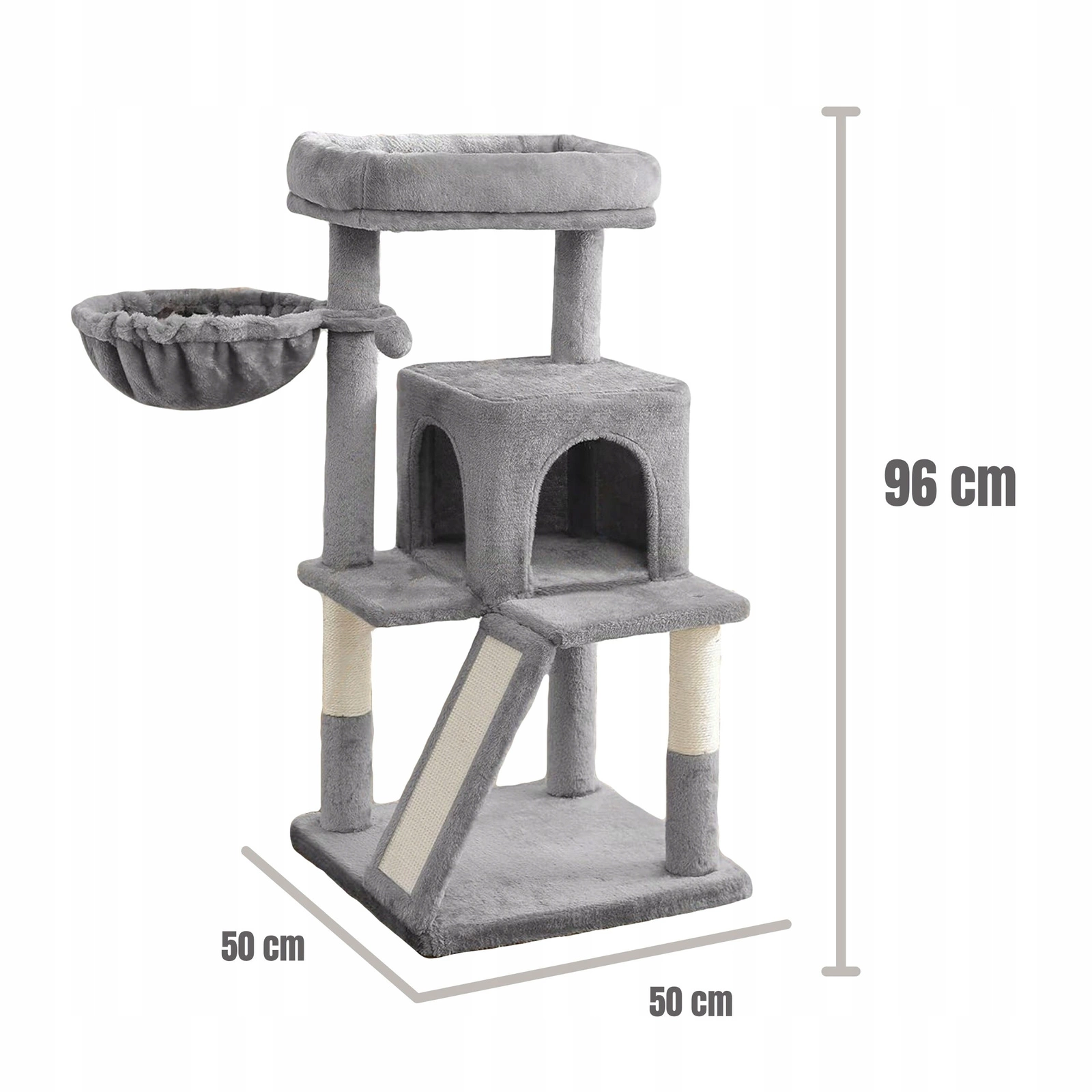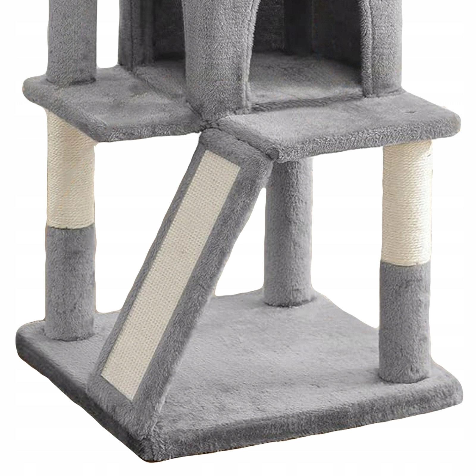 - Skośna rampa z powierzchnią sizalową – dodatkowa strefa do drapania i wspinania