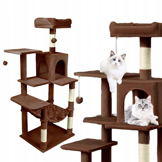 Drapak dla kota Gaczoo duży wieża legowisko brązowy 55 x 45 x 143 cm