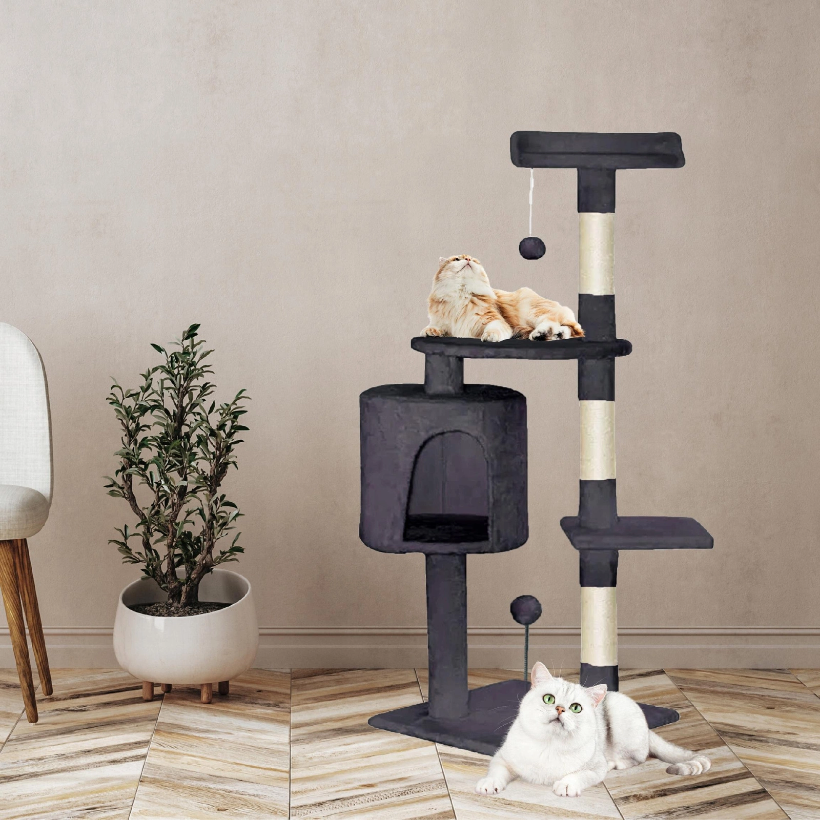 Wielopoziomowa konstrukcja – kilka poziomów daje kotu możliwość wspinania się i zabawy, a także wygodnego odpoczynku na górnym poziomie