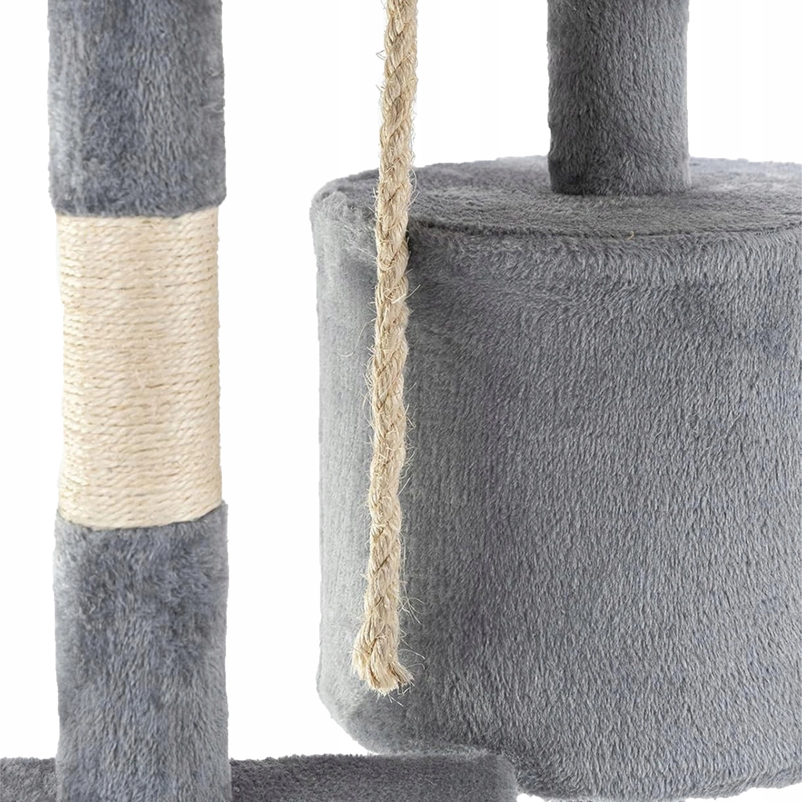 - Naturalne materiały: Słup pokryty sizalem – doskonały do piłowania pazurów bez uszkodzeń mebli.