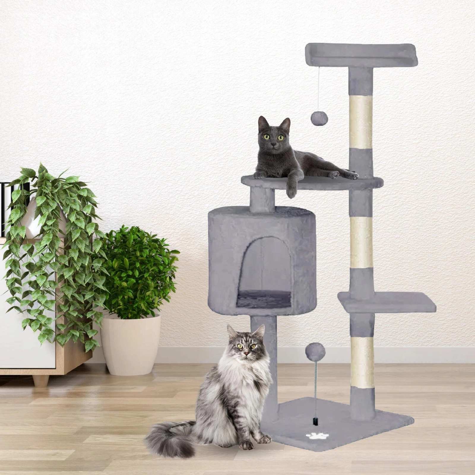 - 2 sizalowe słupki do drapania – pozwalają na naturalne ścieranie pazurków