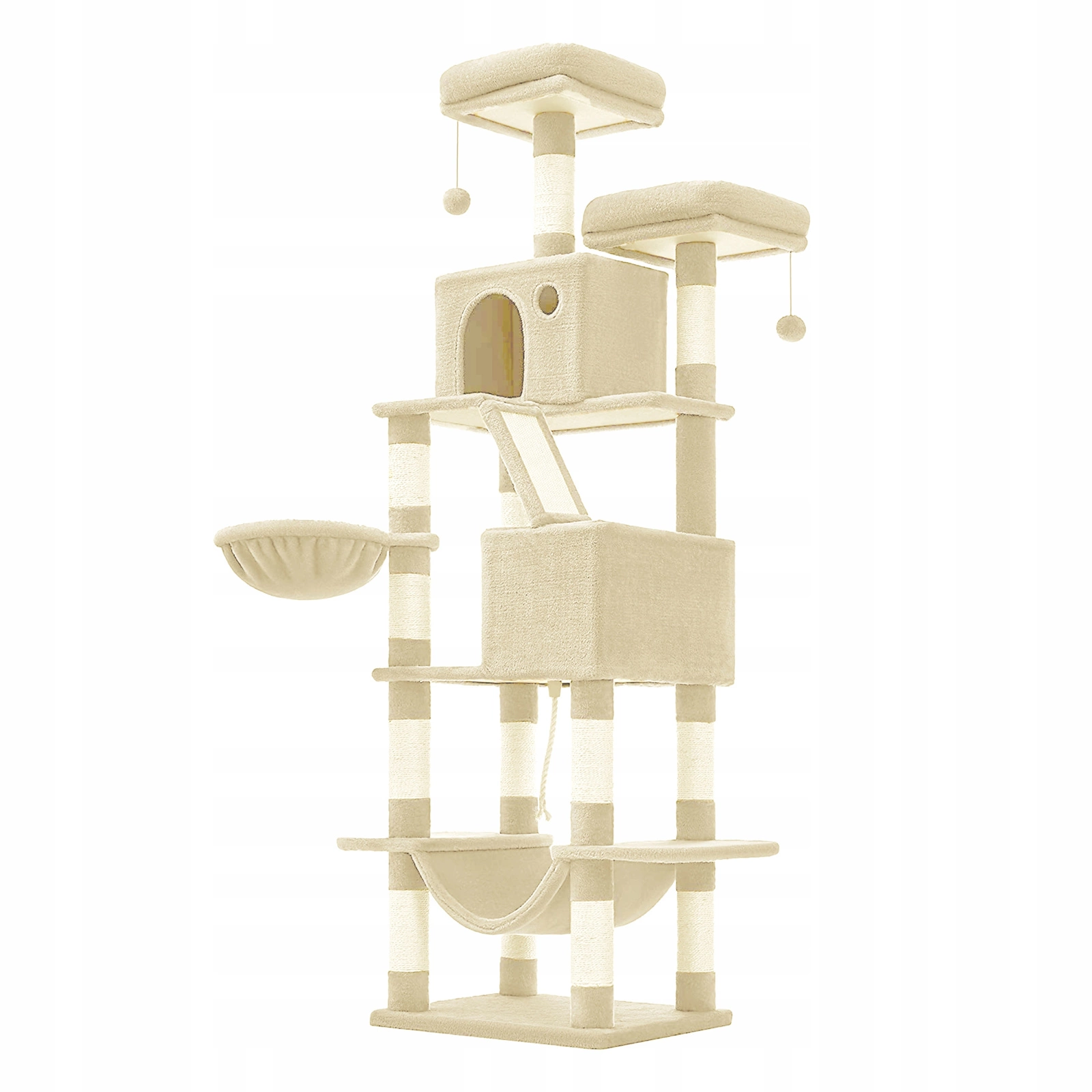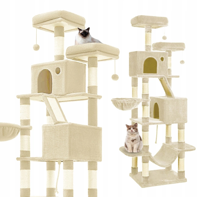 Wielopoziomowa konstrukcja – wysoka wieża z różnymi poziomami daje kotu przestronność do zabawy, wspinania się oraz relaksu