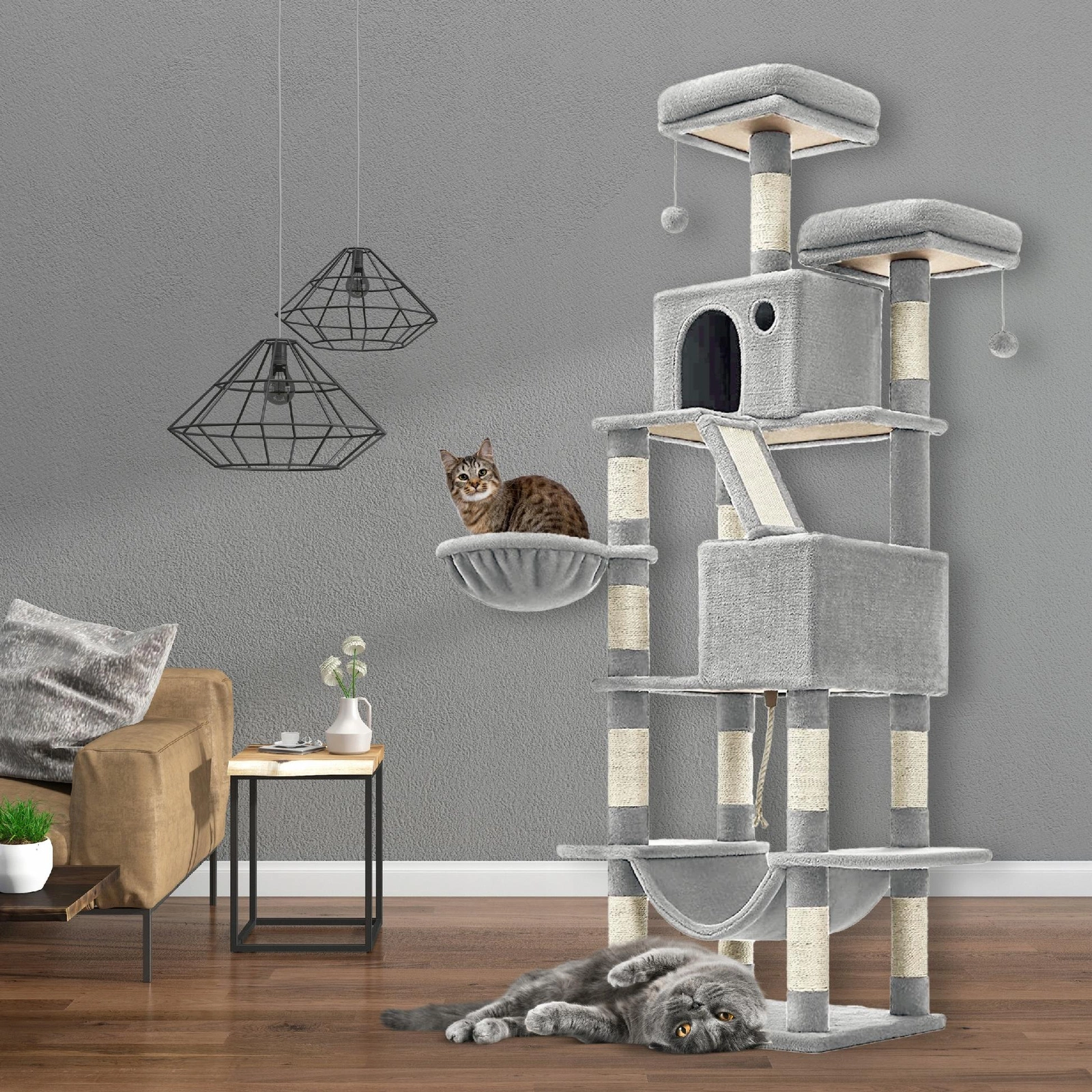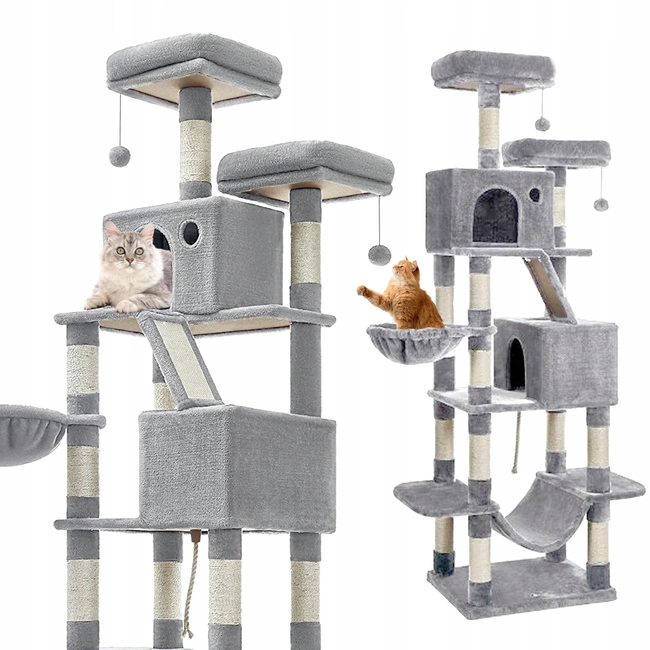 Wielopoziomowa konstrukcja – wysoka wieża z różnymi poziomami daje kotu przestronność do zabawy, wspinania się oraz relaksu