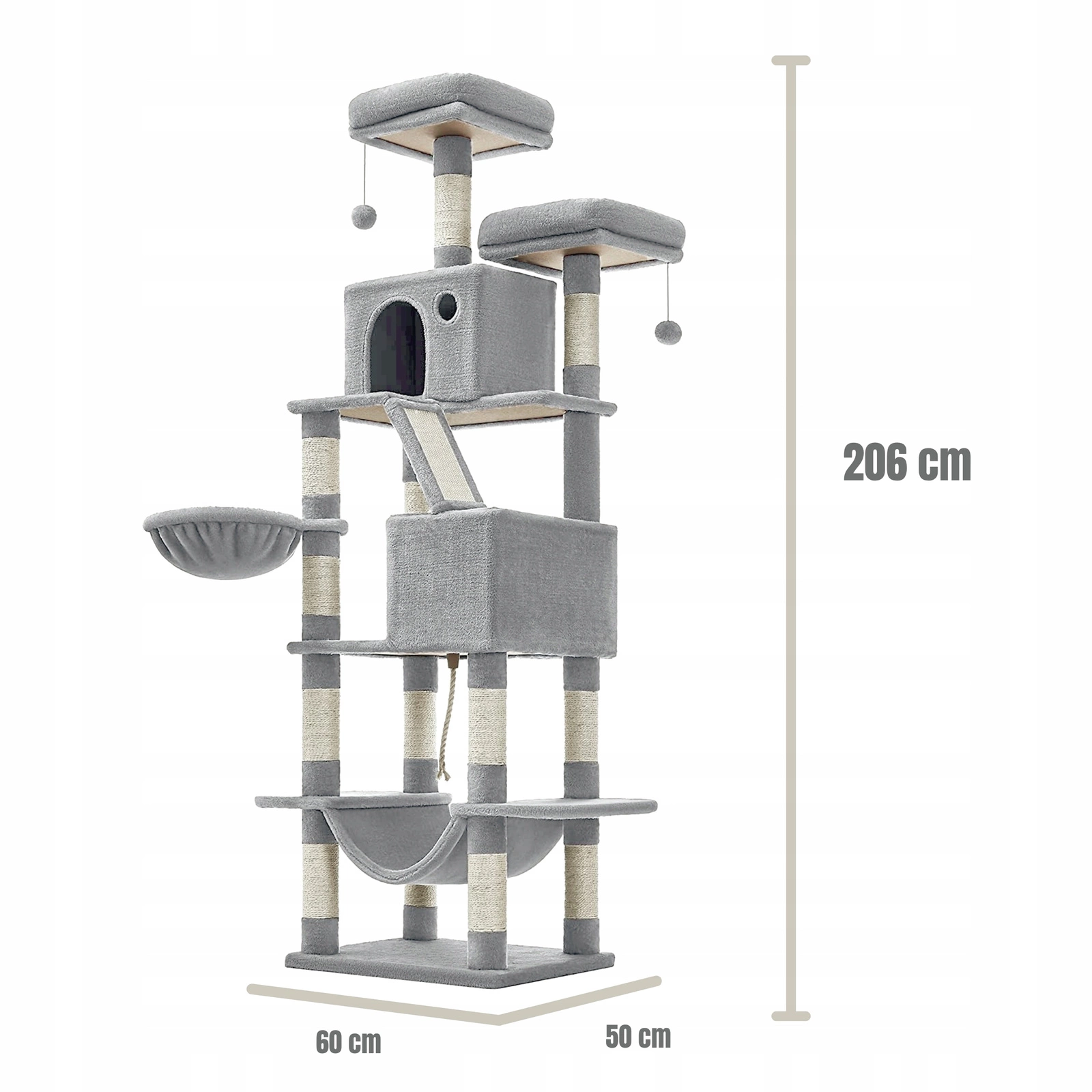 Drapak Gaczoo wysoki wieża legowisko to wyjątkowy, przestronny drapak, który spełnia wszystkie potrzeby aktywnego kota. Z wysokością 206 cm oferuje kilka poziomów, idealnych do wspinania się, zabawy i odpoczynku. Dzięki dużej powierzchni oraz wygodnemu legowisku na szczycie, drapak stanowi doskonałe miejsce dla kotów, które uwielbiają wysokość i komfort.