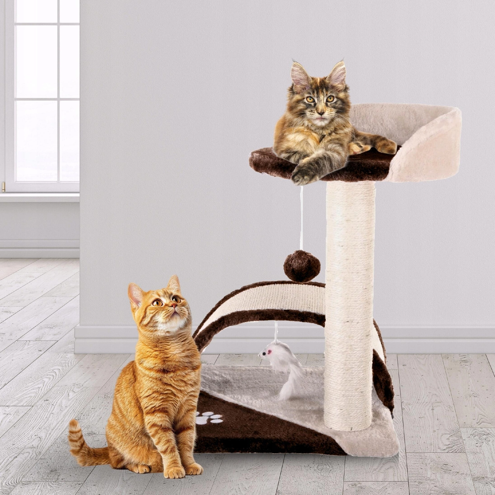 Drapak dla kota Gaczoo z podstawką i zabawką brązowy 35 x 35 x 42 cm