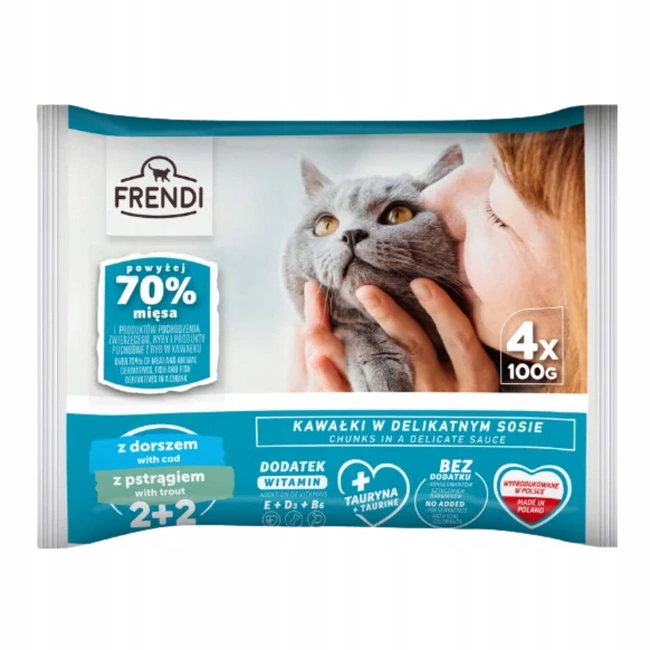 Smak:FRENDI mokra karma dla kota pstrąg dorsz 4 x 100g