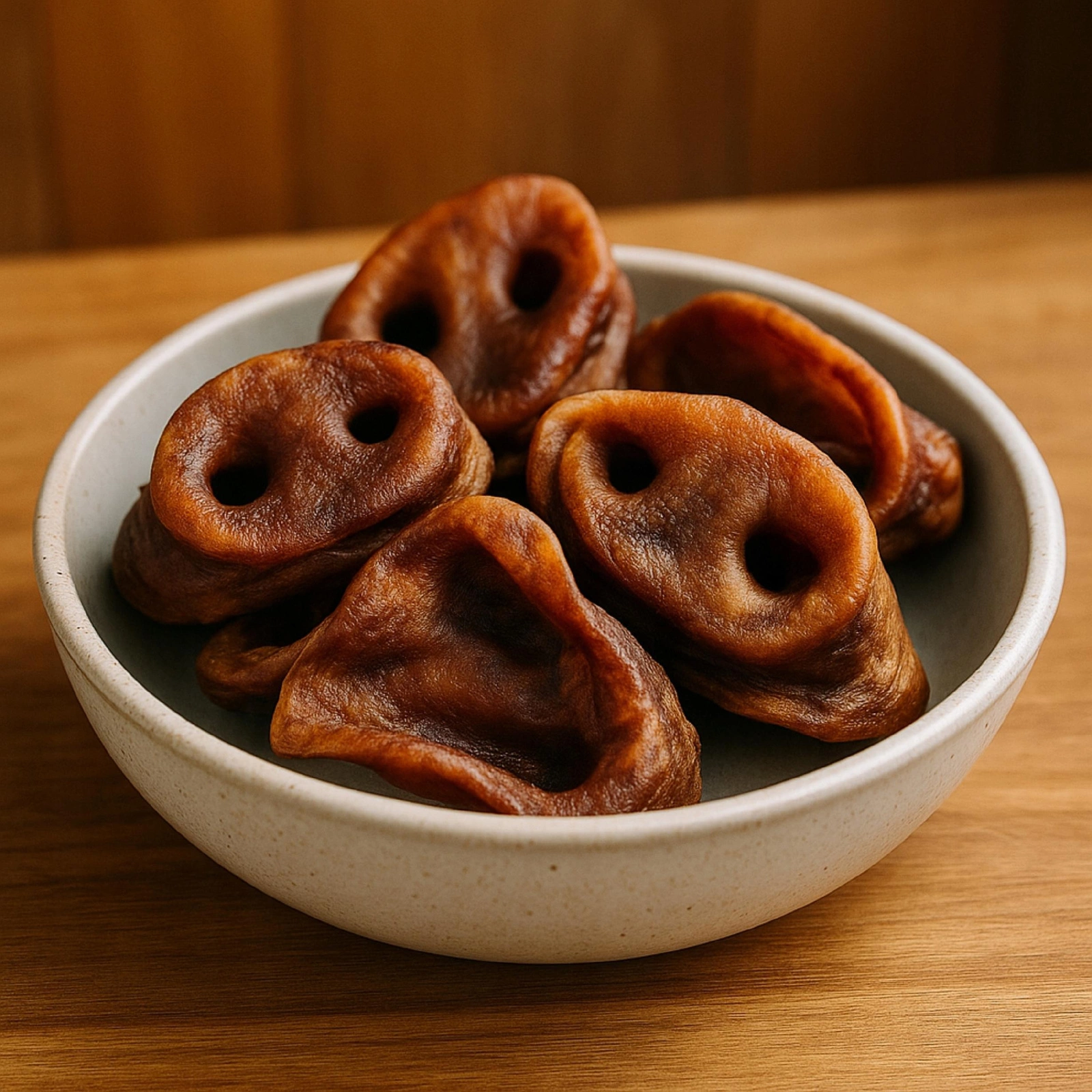 1. Intensywny, naturalny zapach - Noski wieprzowe mają bardzo charakterystyczny, mięsny aromat, który dla ludzi może być zbyt wyrazisty, ale dla psów – to zapach raju. Psy kierują się głównie nosem, a suszone noski pachną dla nich jak „prawdziwe mięso”, co pobudza apetyt i ciekawość.