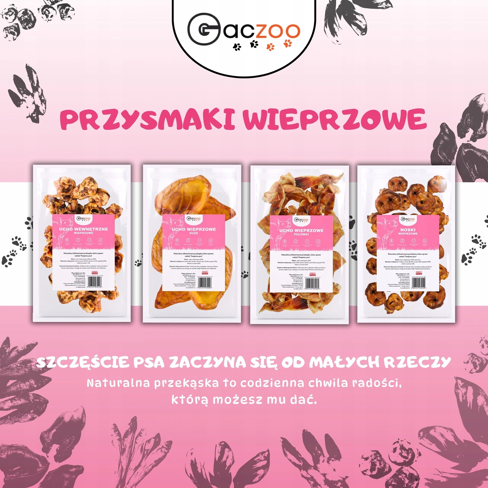 Szukasz przysmaku, który zachwyci Twojego psa nie tylko smakiem, ale też zapewni mu zdrową porcję żucia? Noski Wieprzowe GACZOO to naturalna, suszona przekąska, która pobudza zmysły, zaspokaja instynkt gryzienia i wspomaga higienę jamy ustnej. Suszone powietrzem, bez konserwantów i sztucznych dodatków – zachowują intensywny zapach, naturalną strukturę i wyjątkowy smak, który psy uwielbiają.