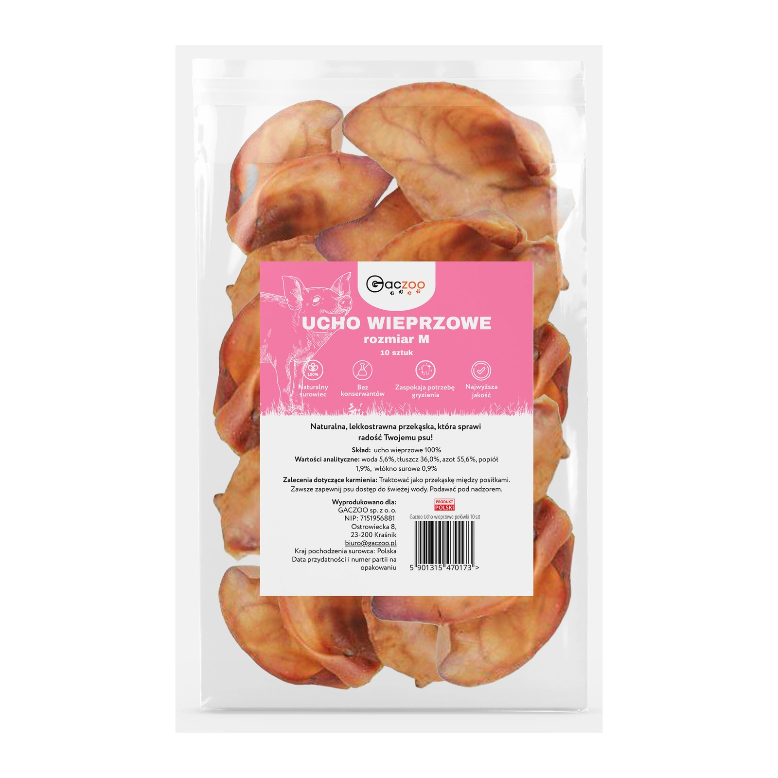 GACZOO 100% Naturalny przysmak dla psa Ucho Wieprzowe połówki 20 szt gryzak