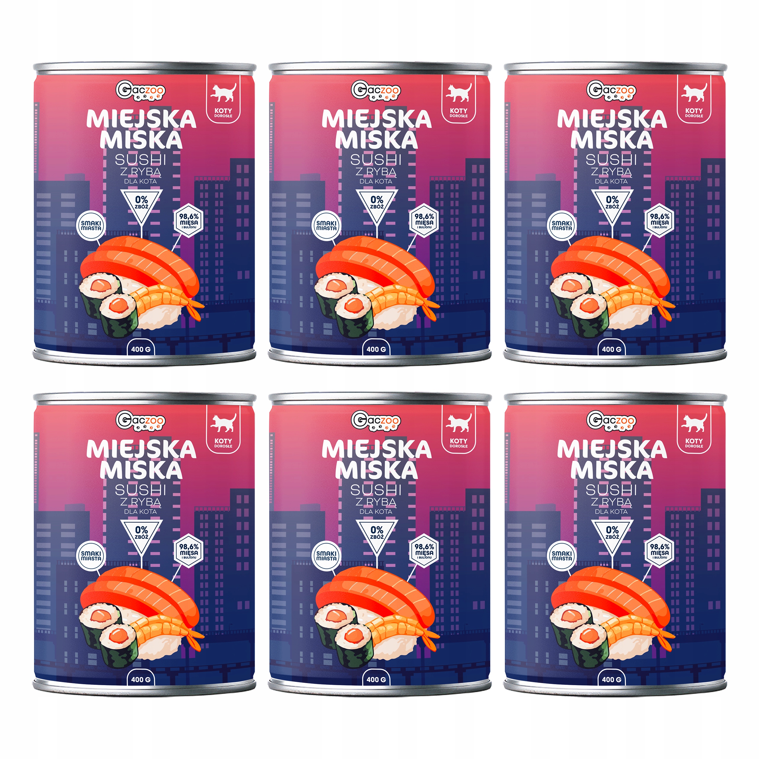 Gaczoo Miejska Miska bezzbożowa karma mokra dla kota Sushi z Rybą 6 x 400g