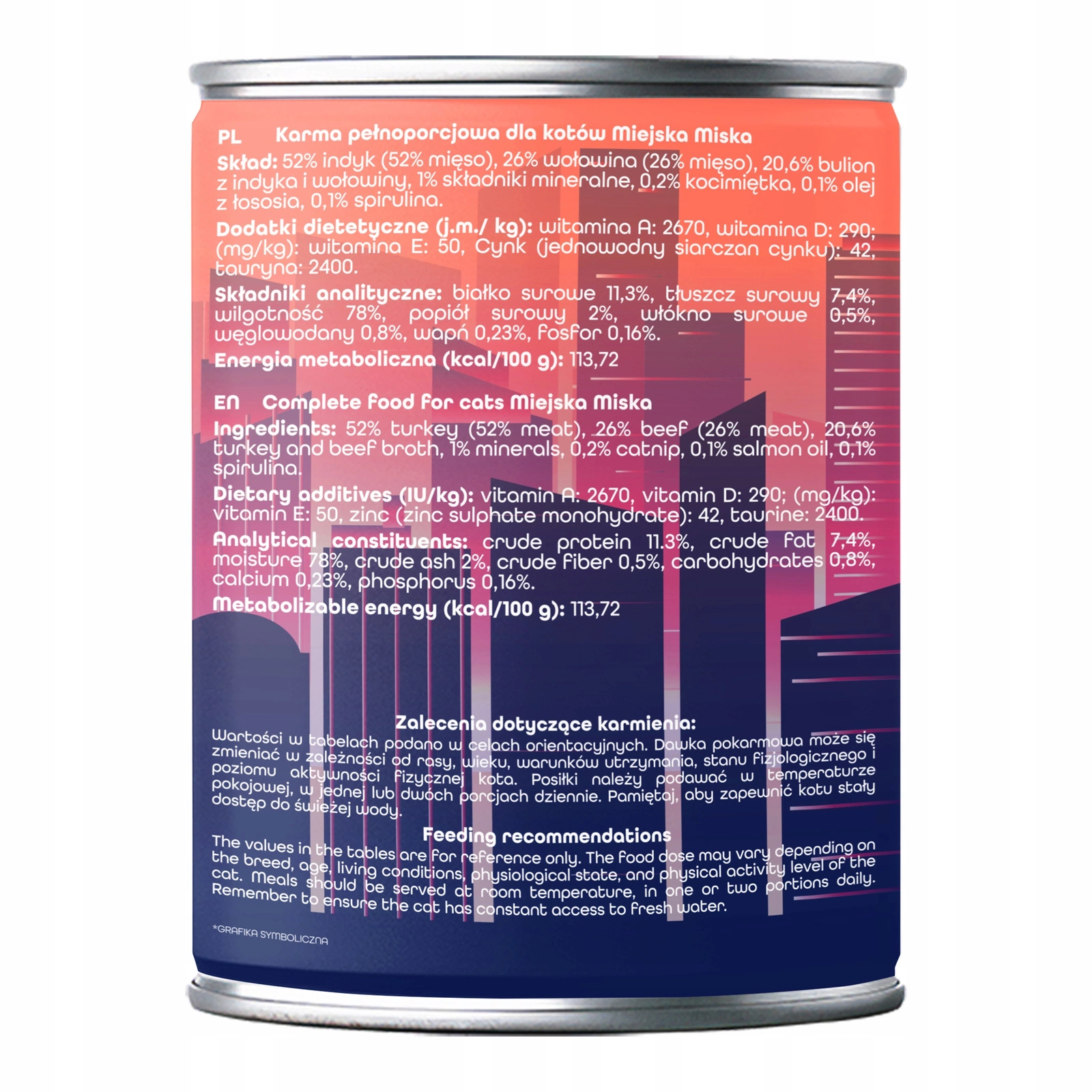 Miejska Miska to karmy inspirowane codziennym życiem w rytmie miasta – proste, naturalne i bez kompromisów. To pewność, że Twój kot dostaje to, co najlepsze, bez ukrytych składników i niepotrzebnych wypełniaczy.
