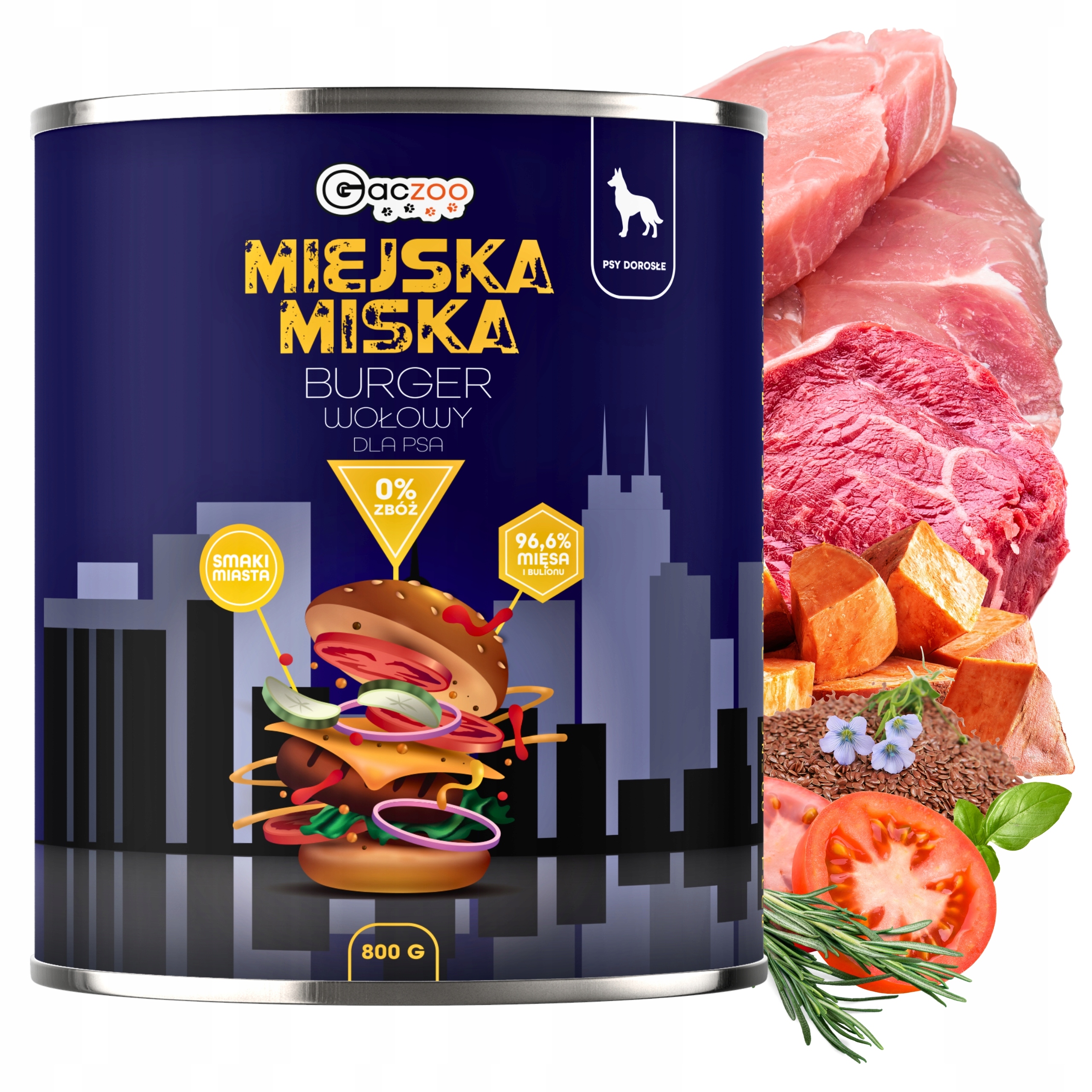 Gaczoo Miejska Miska bezzbożowa karma mokra dla psa Burger Wołowy 12 x 800g