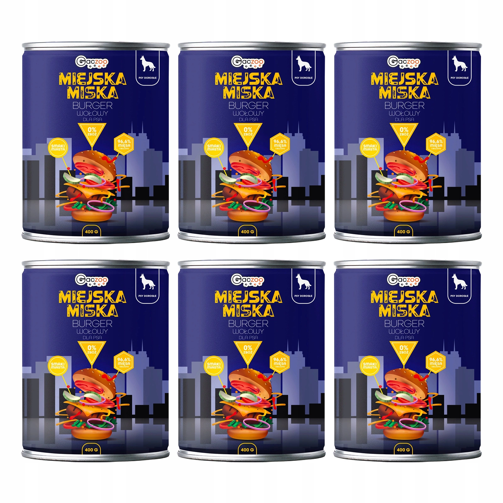 Gaczoo Miejska Miska bezzbożowa karma mokra dla psa Burger Wołowy 6 x 400g