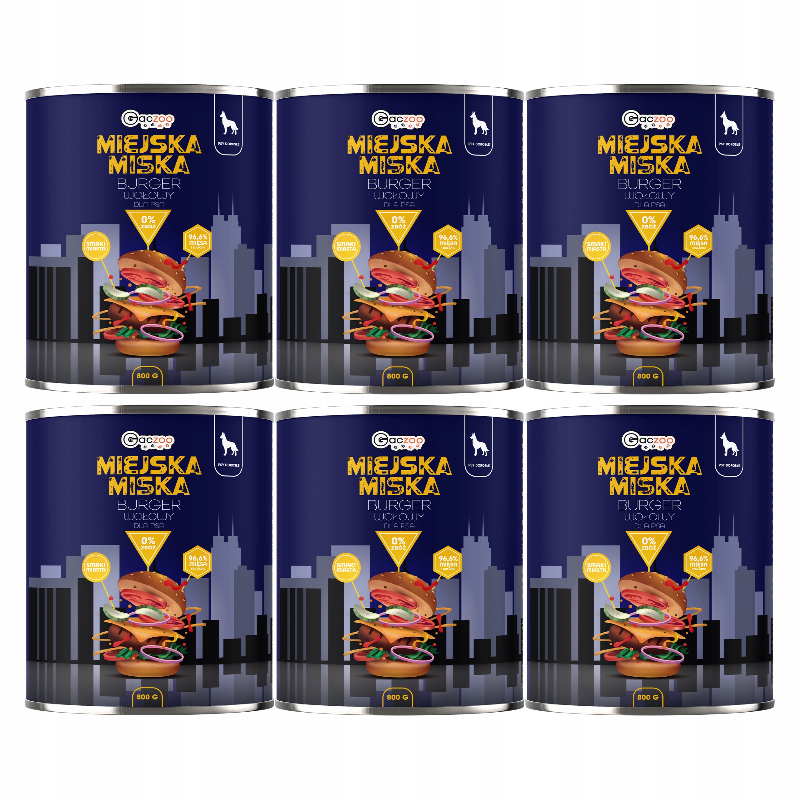 Gaczoo Miejska Miska bezzbożowa karma mokra dla psa Burger Wołowy 6 x 800g