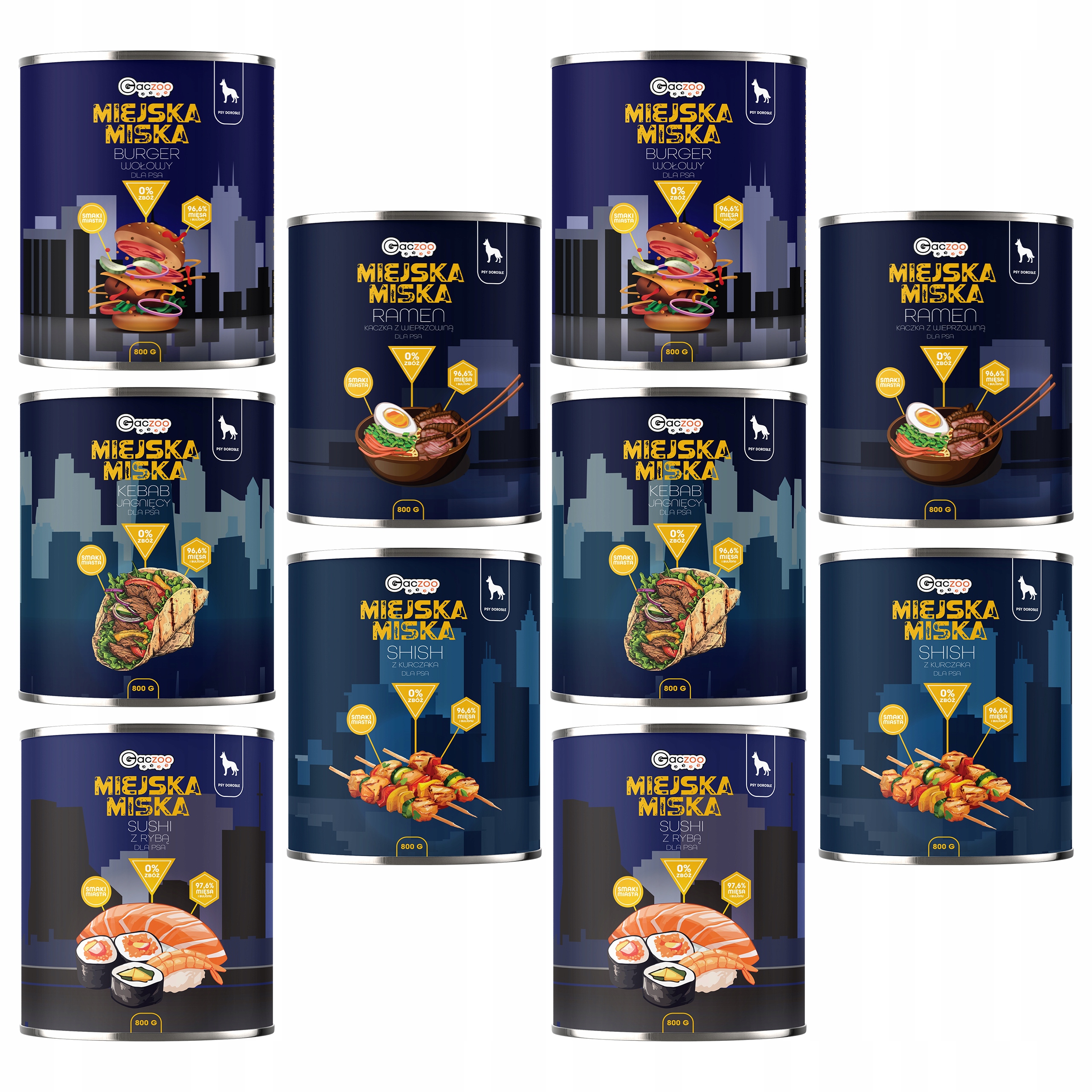 Gaczoo Miejska Miska bezzbożowa karma mokra dla psa mix smaków 10 x 800g