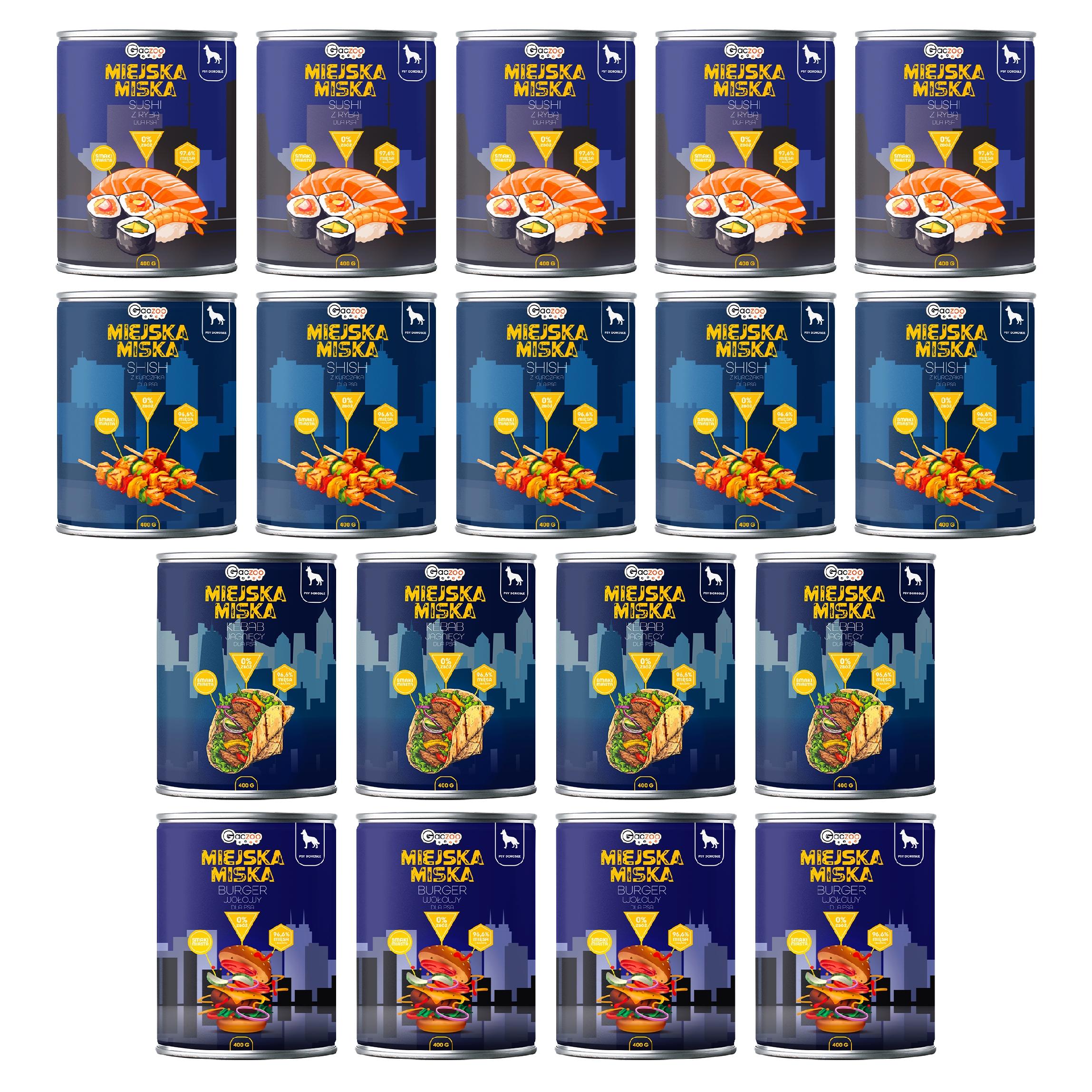 Gaczoo Miejska Miska bezzbożowa karma mokra dla psa Mix smaków 18 x 400g