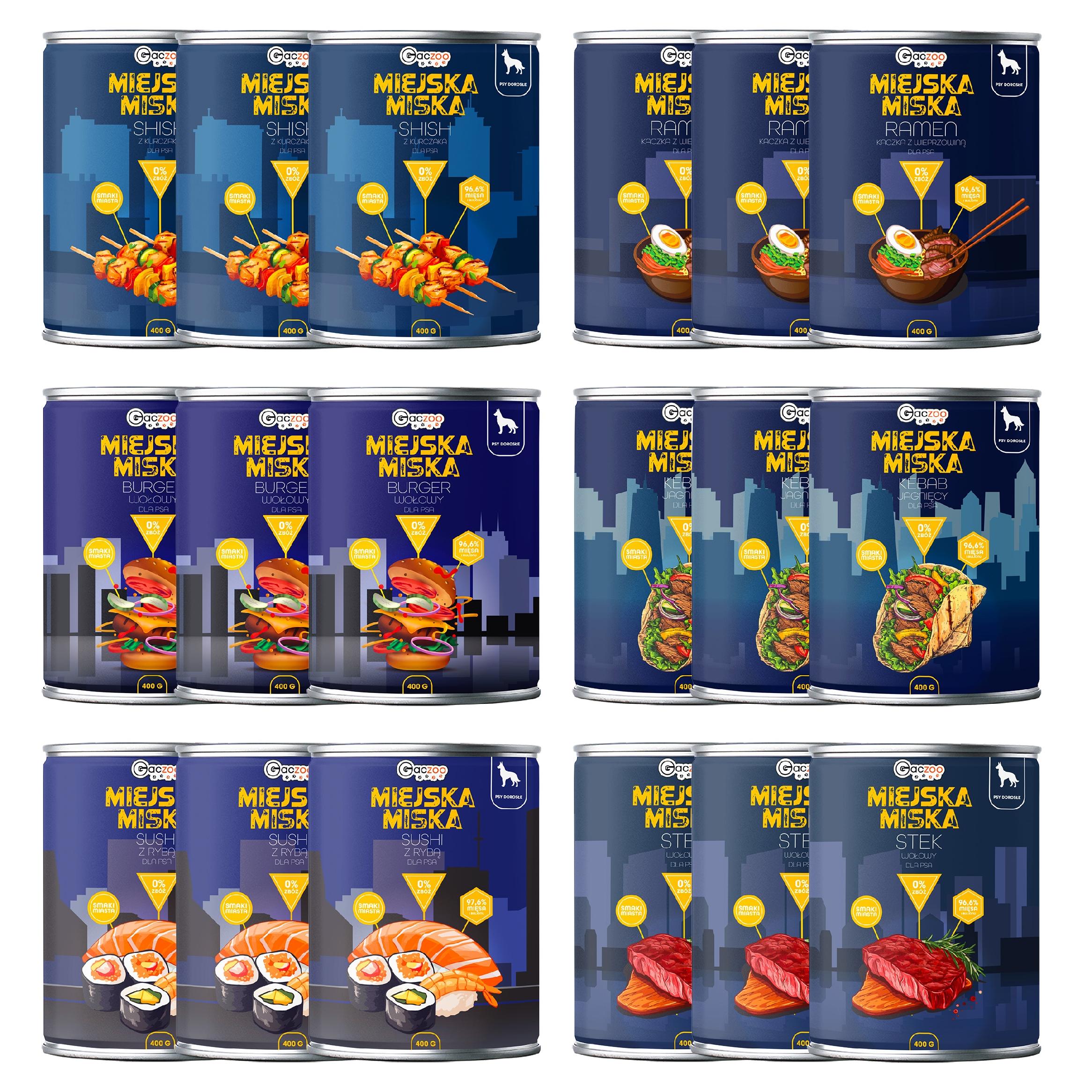 Gaczoo Miejska Miska bezzbożowa karma mokra dla psa Mix smaków 18 x 400g
