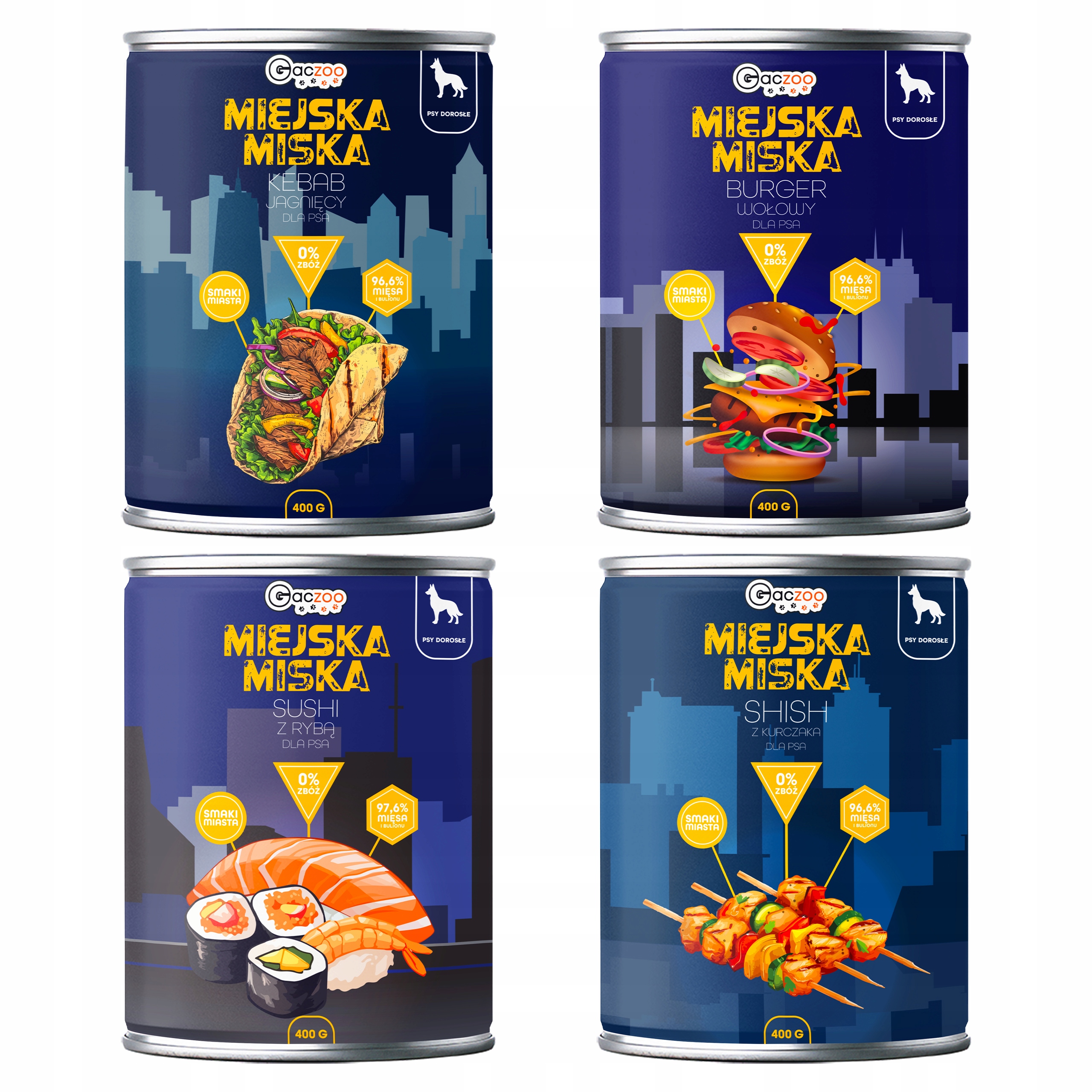 Gaczoo Miejska Miska bezzbożowa karma mokra dla psa Mix smaków 4 x 400g