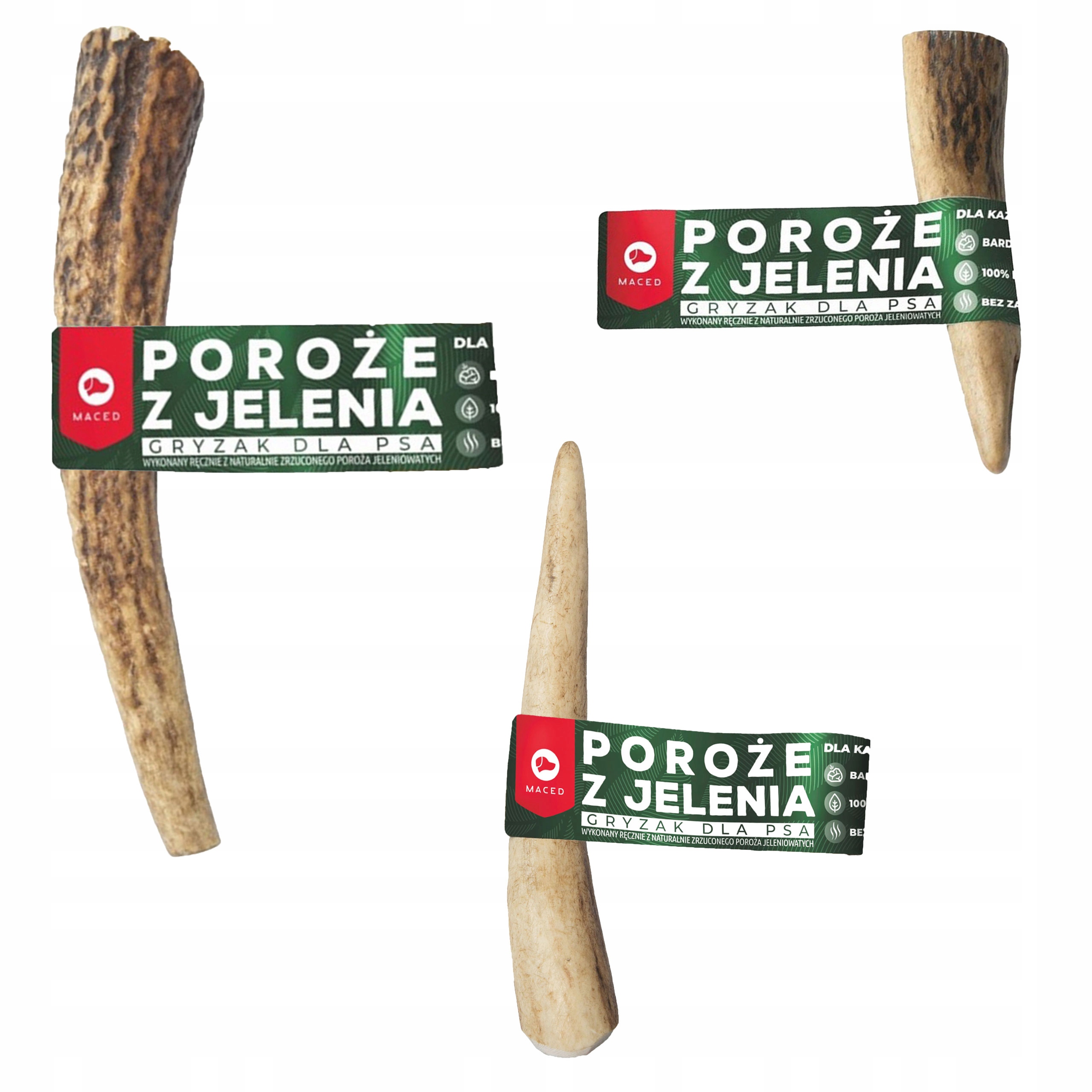 - Przysmak MACED dla psa zestaw gryzak naturalny dla psa poroże z jelenia