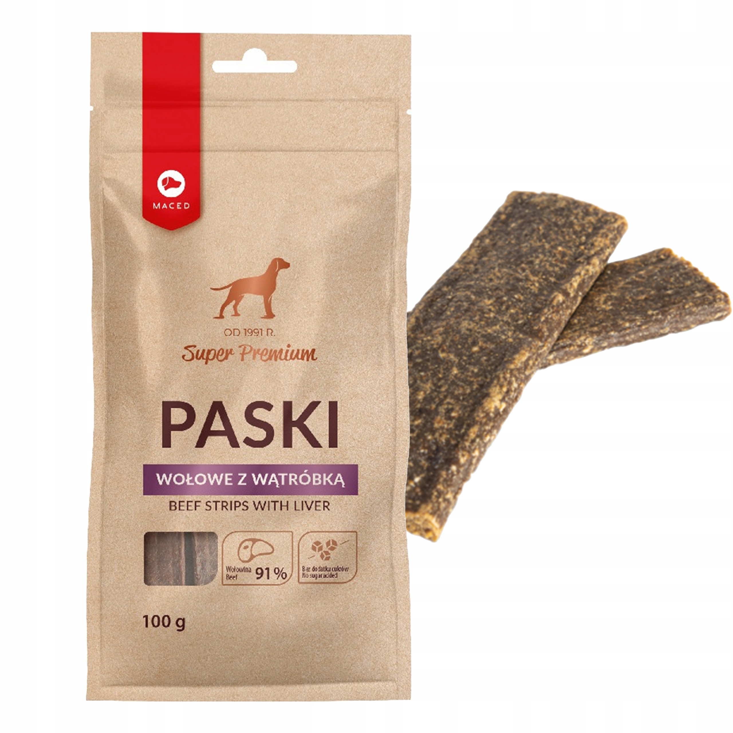 - Przysmak MACED dla psa naturalny gryzak zestaw harder wołowy paski wołowe z wątróbką