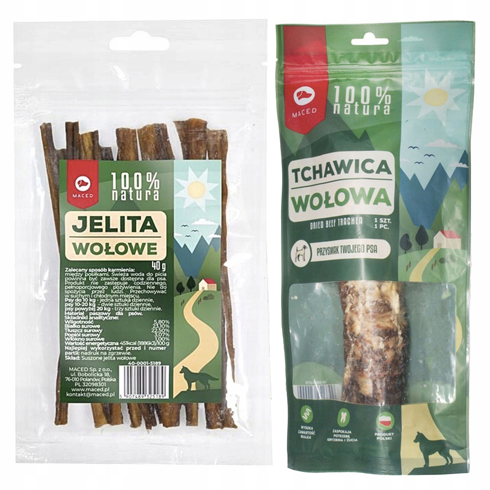 - Przysmak MACED dla psa naturalny gryzak zestaw jelita wołowe tchawica wołowa