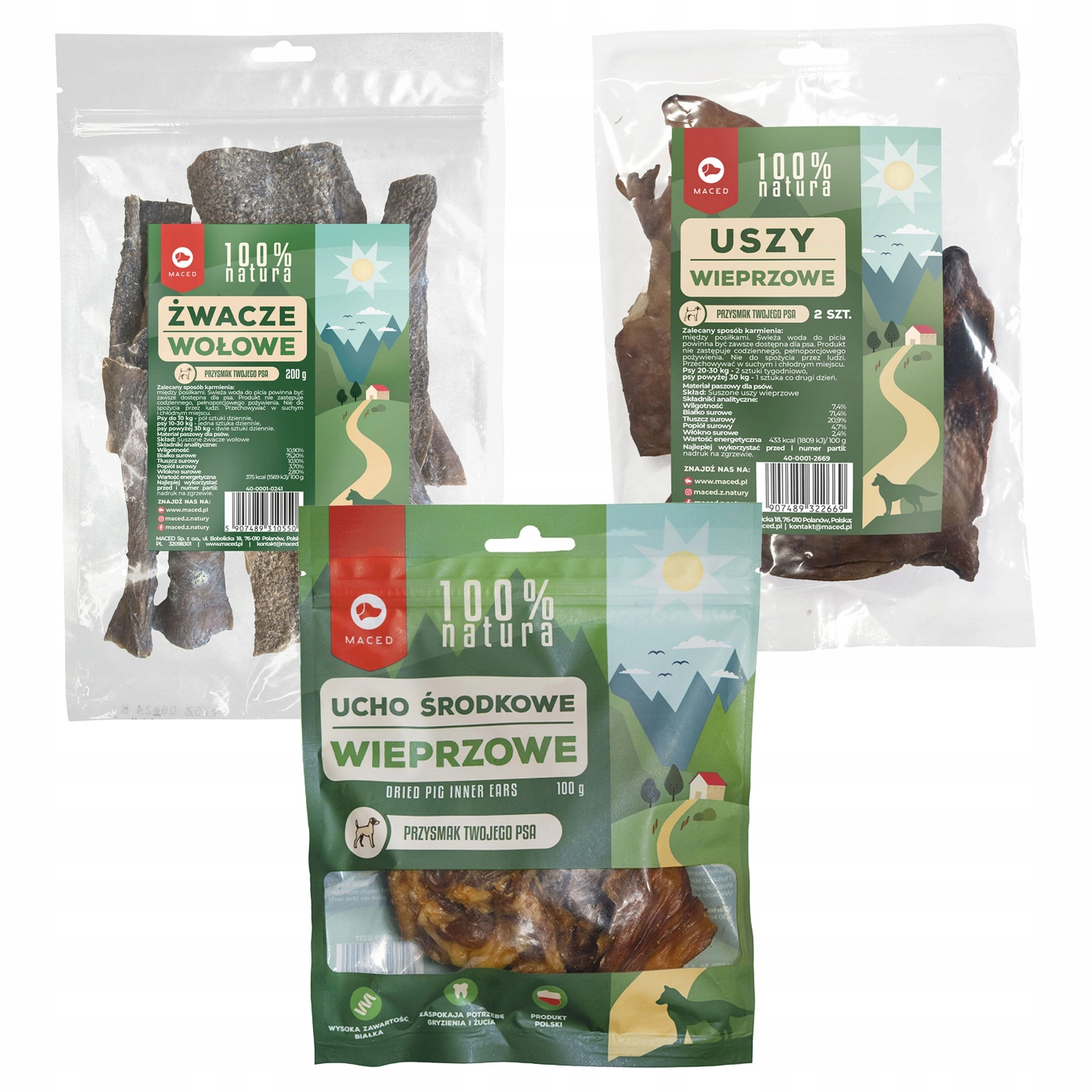 - Przysmak MACED dla psa zestaw gryzaków naturalnych ucho środkowe wieprzowe żwacze wołowe uszy wieprzowe