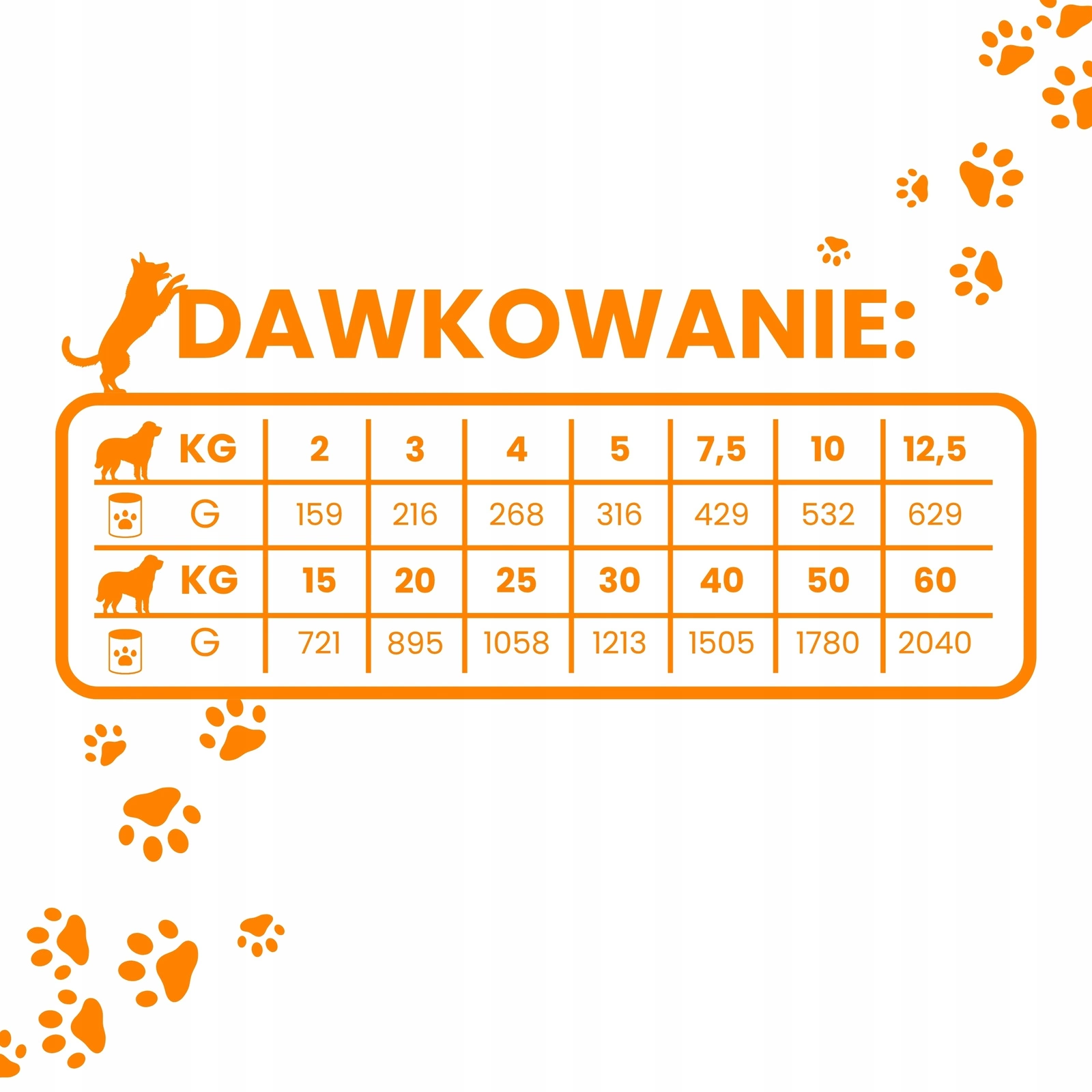 W tabelce znajduje się sugerowana ilość karmy dostosowana do wagi i potrzeb Twojego psa.