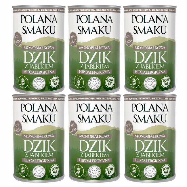 Mokra karma monobiałkowa dla psa Polana Smaku Dzik z jabłkiem 6 x 400g