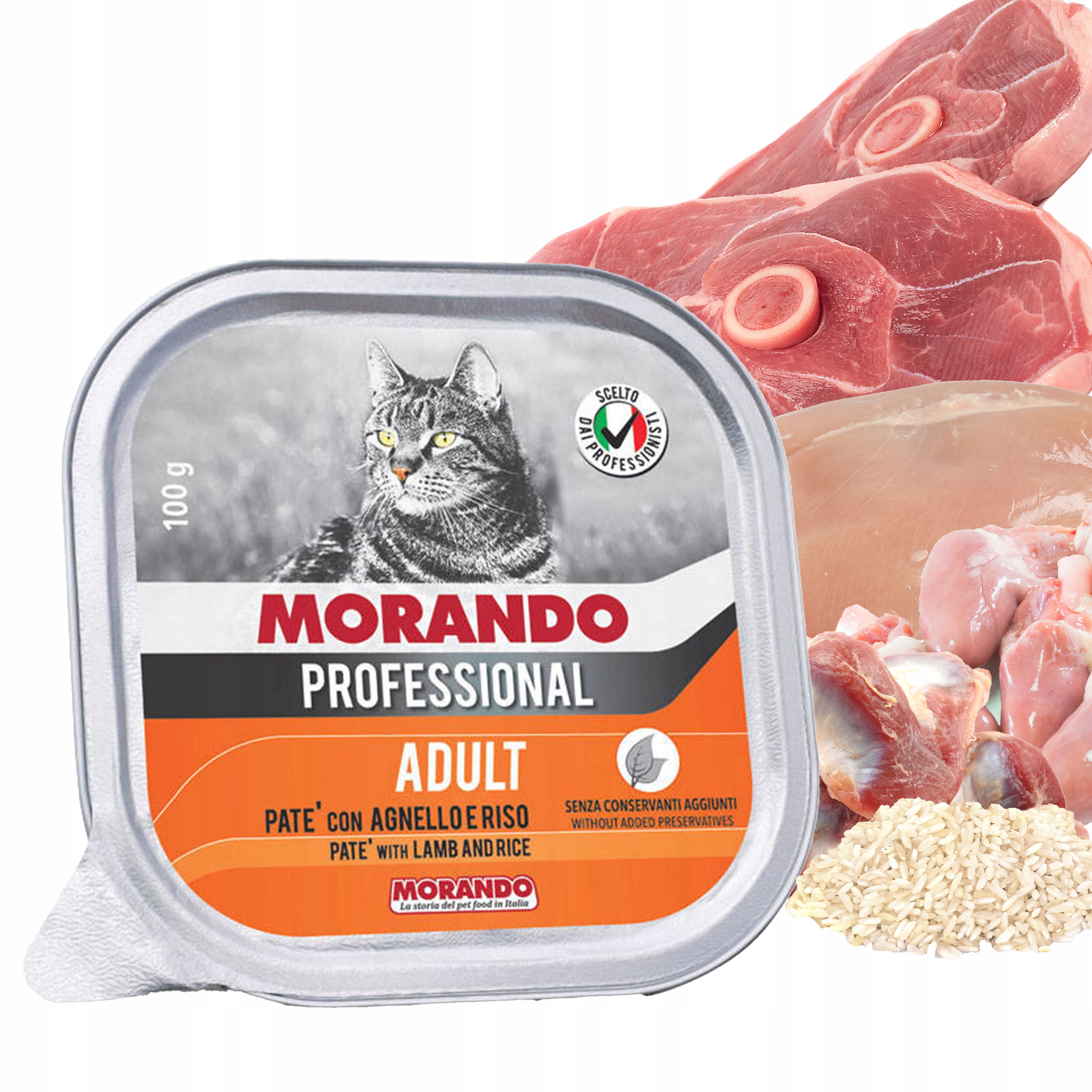 Morando Professional pasztet z jagnięciną to idealnie zbalansowana, lekkostrawna mokra karma dla kotów zawierająca 50% wyselekcjonowanego, wysokiej jakości mięsa zwierzęcego, jagnięcina (5%) oraz witaminy D3, E, cynk, magnez, potas, proteiny oraz niezbędne minerały. To energia witalna, silne mięśnie, piękna sierść oraz zdrowy rozwój Twojego kota.