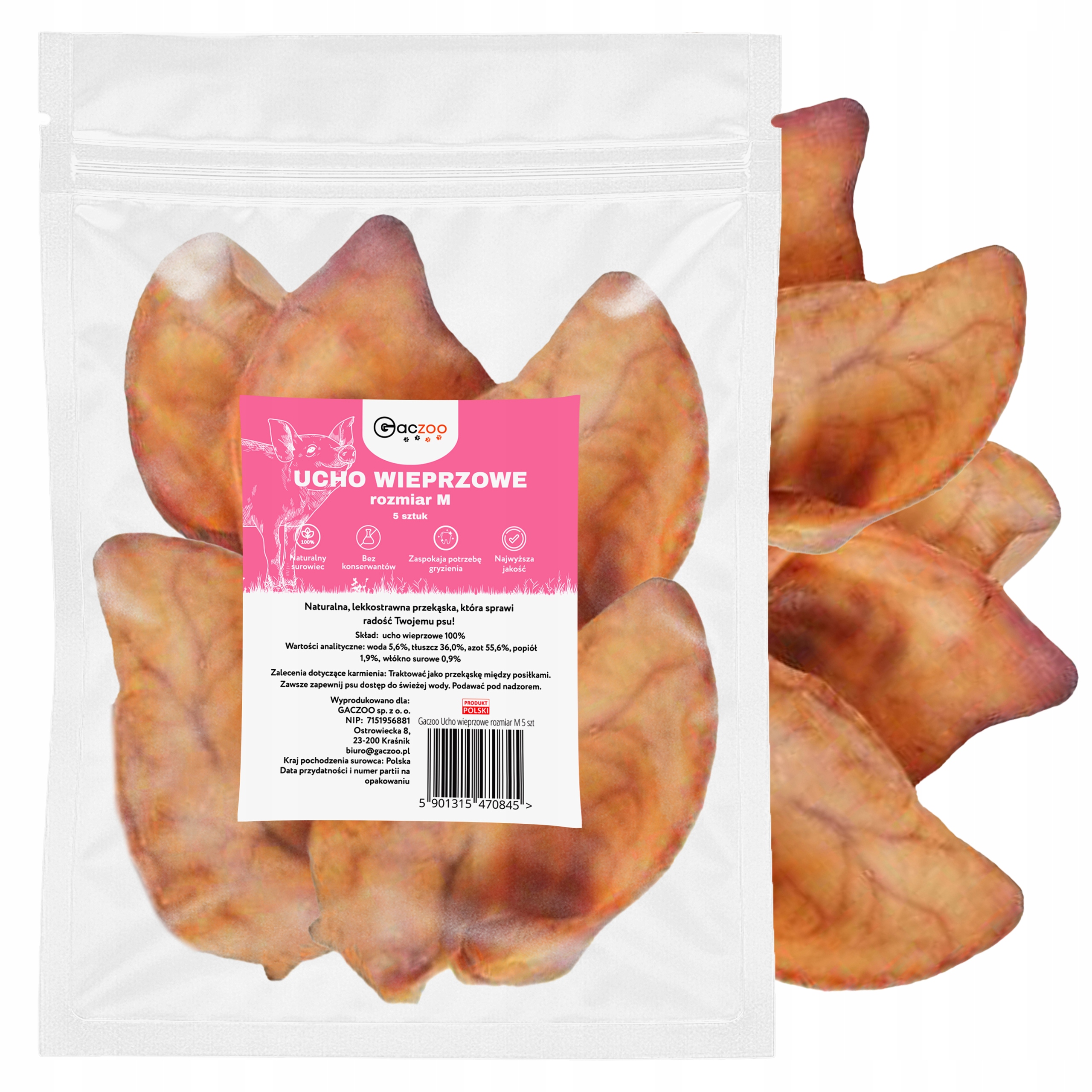 Naturalny przysmak dla psa Ucho Wieprzowe 5 sztuk smaczki gryzaki gaczoo