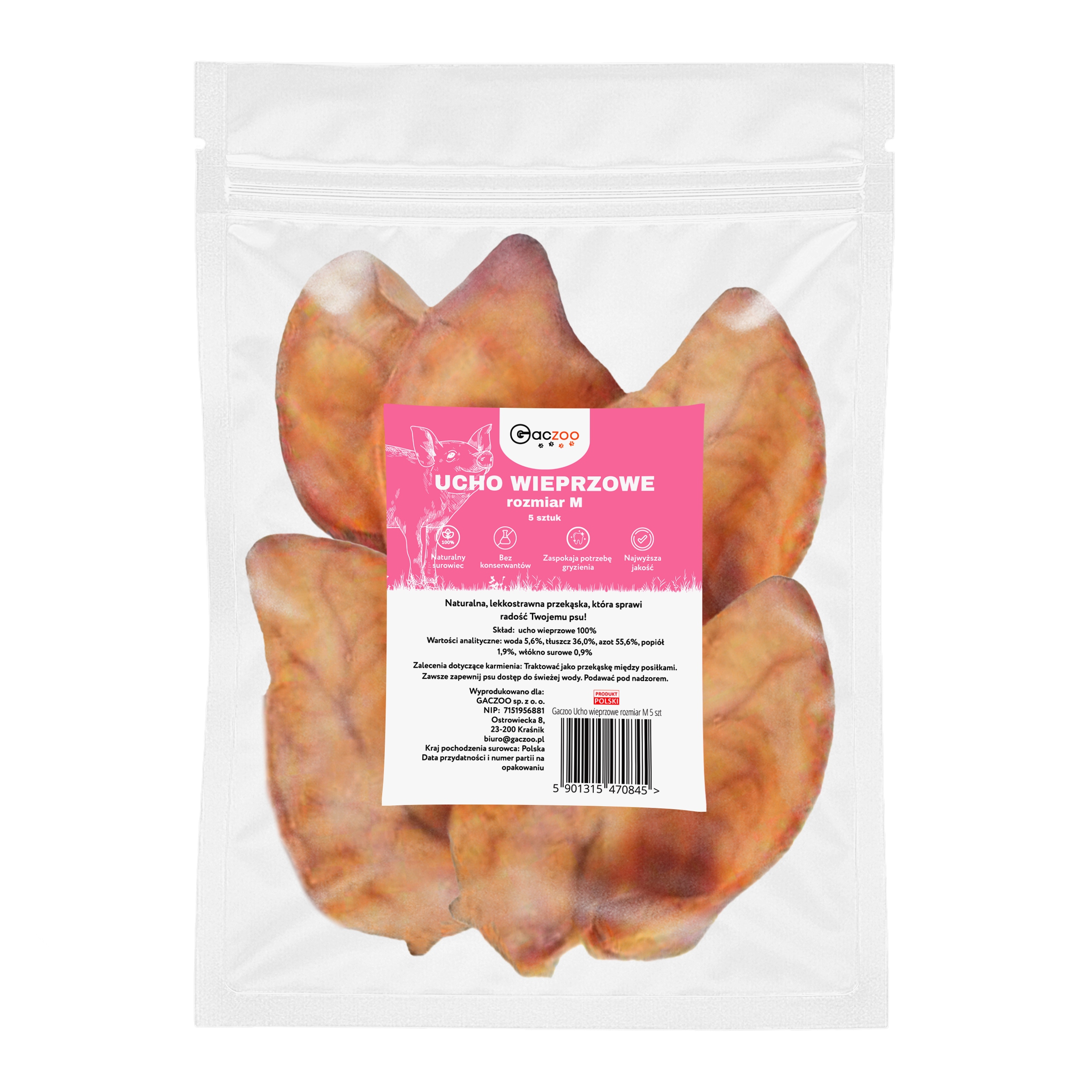 GACZOO 100% Naturalny przysmak dla psa Ucho Wieprzowe 5 sztuk