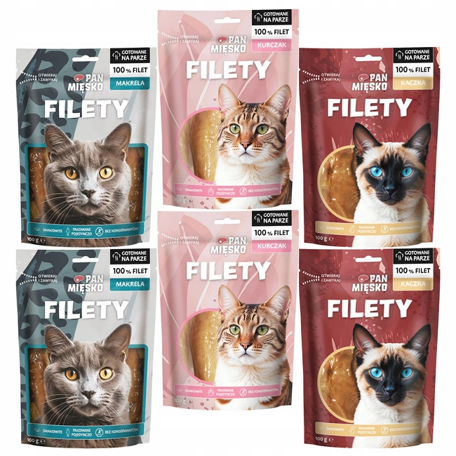 Pan Mięsko Filety Naturalny Smakołyk przysmak dla kota Mix smaków 6 x 100g