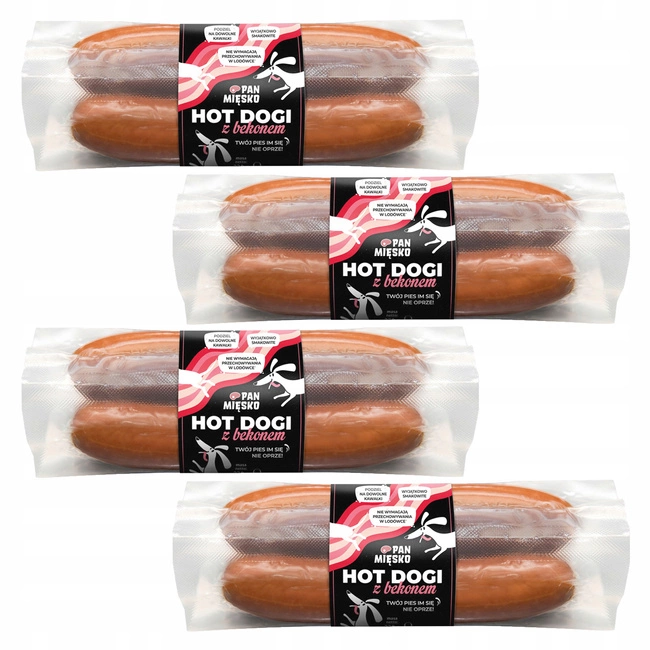 Pan Mięsko Hot Dogi z Bekonem 220g to wyjątkowo smakowite i aromatyczne kiełbaski przeznaczone dla psów. Każde opakowanie zawiera 4 osobno pakowane kiełbaski, co zapewnia świeżość i wygodę podczas podawania. Pan Mięsko to doskonały wybór dla właścicieli psów poszukujących smacznych i wygodnych w podawaniu przysmaków i karm, które z pewnością przypadną do gustu ich pupilom.