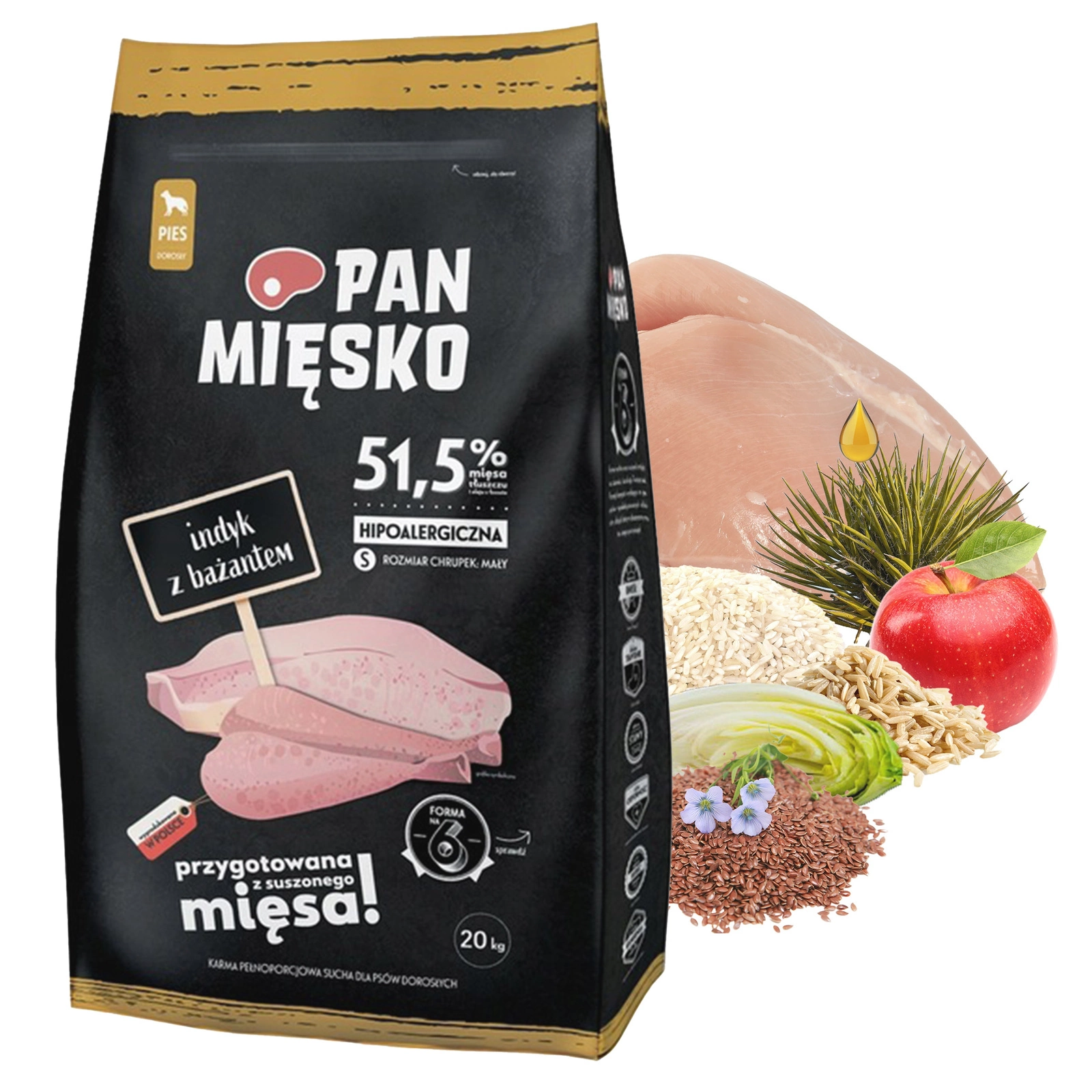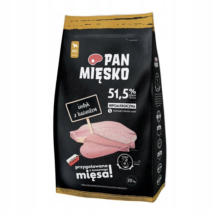PAN MIĘSKO Karma sucha dla psa Indyk Bażant CHRUPKI S 20 kg